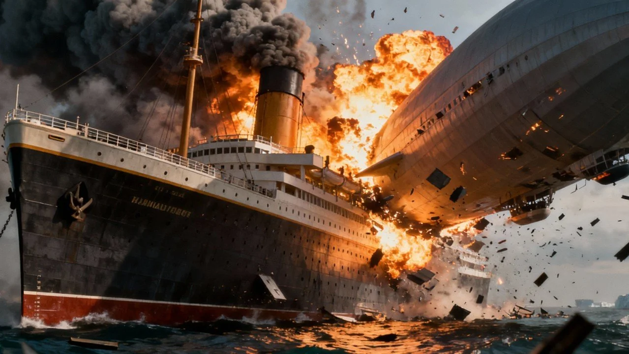 Yes, the Hiddenburg is hitting the Titanic as it hits an iceberg.